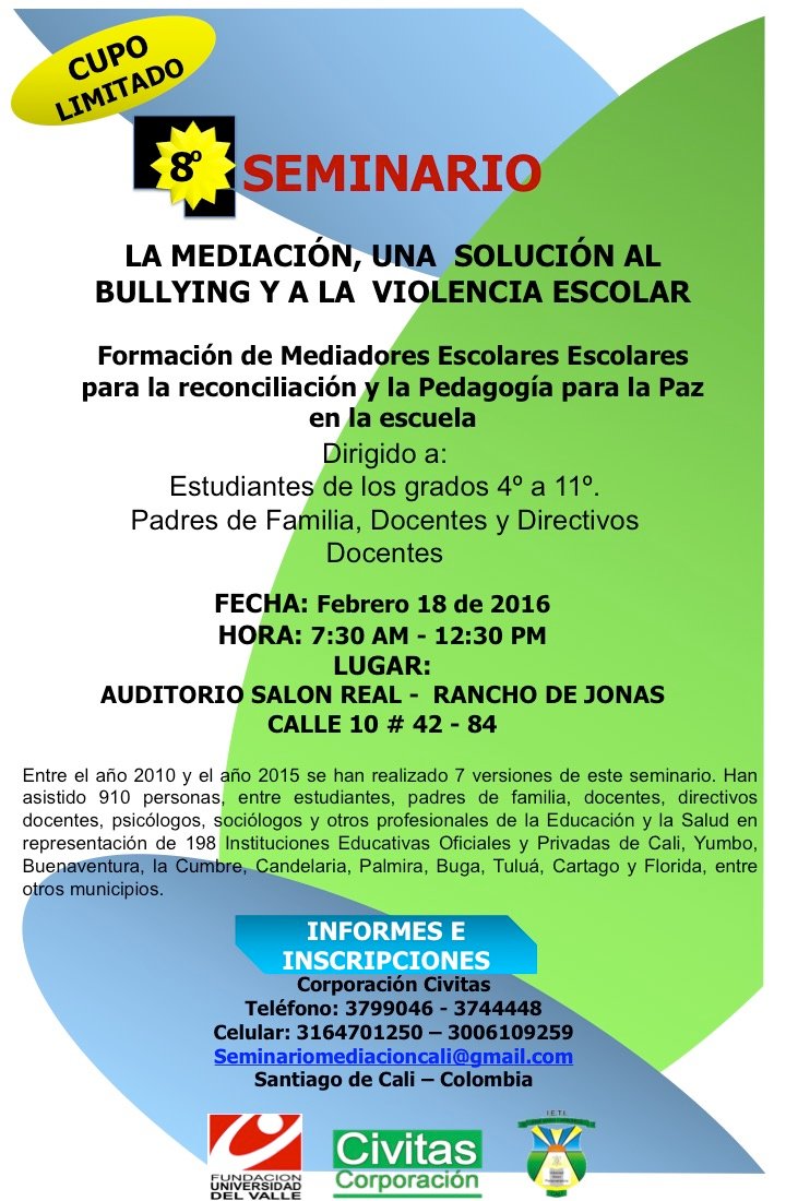 Por solicitud de la comunidad educativa, realizaremos por Octava ocasión el seminario: “La Mediación Una Solución al Bullying y a …