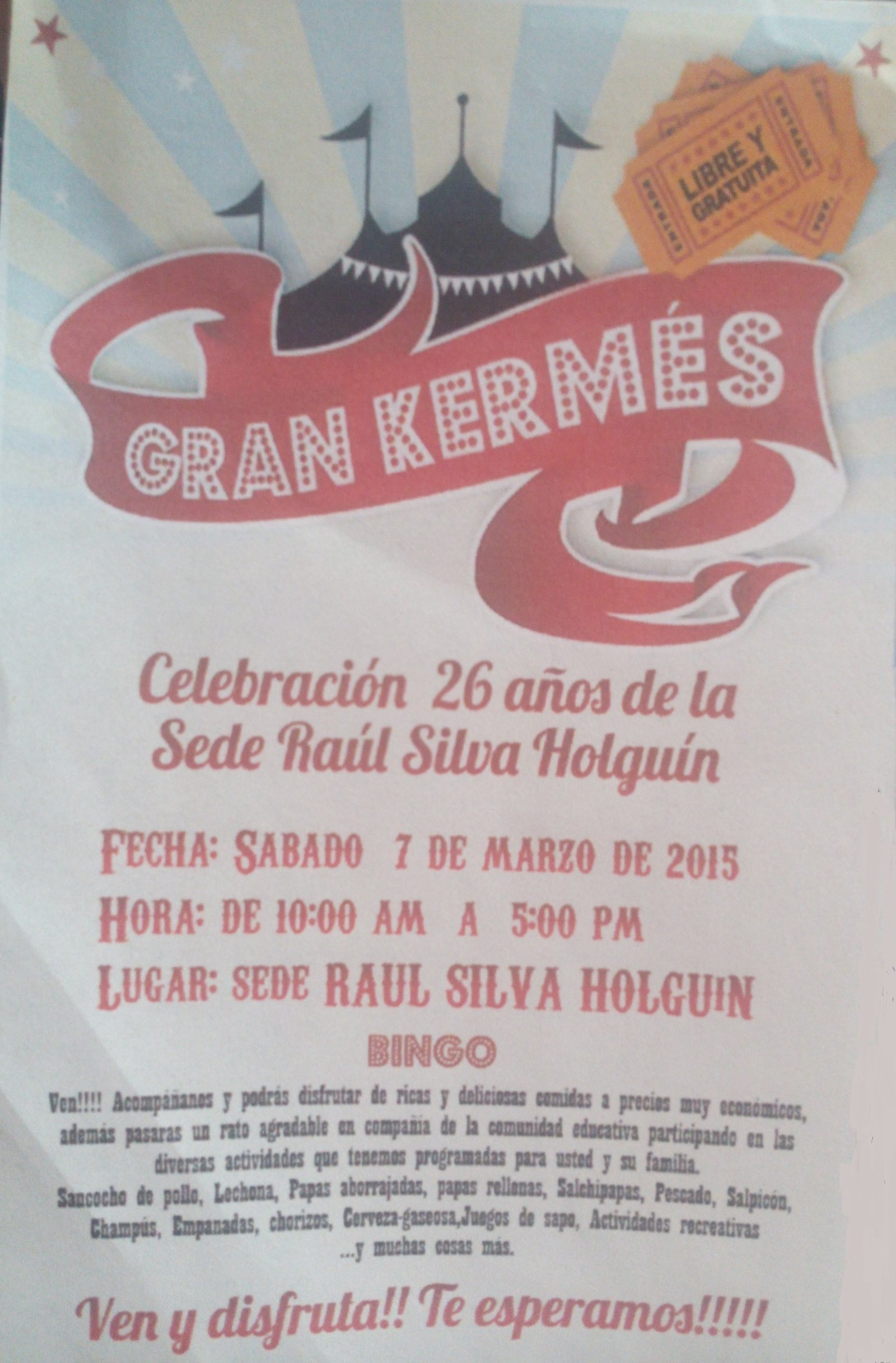 Como parte de la celebración de los 26 años de la sede Raul Silva Holguín, se invita a la comunidad …