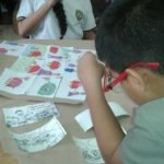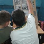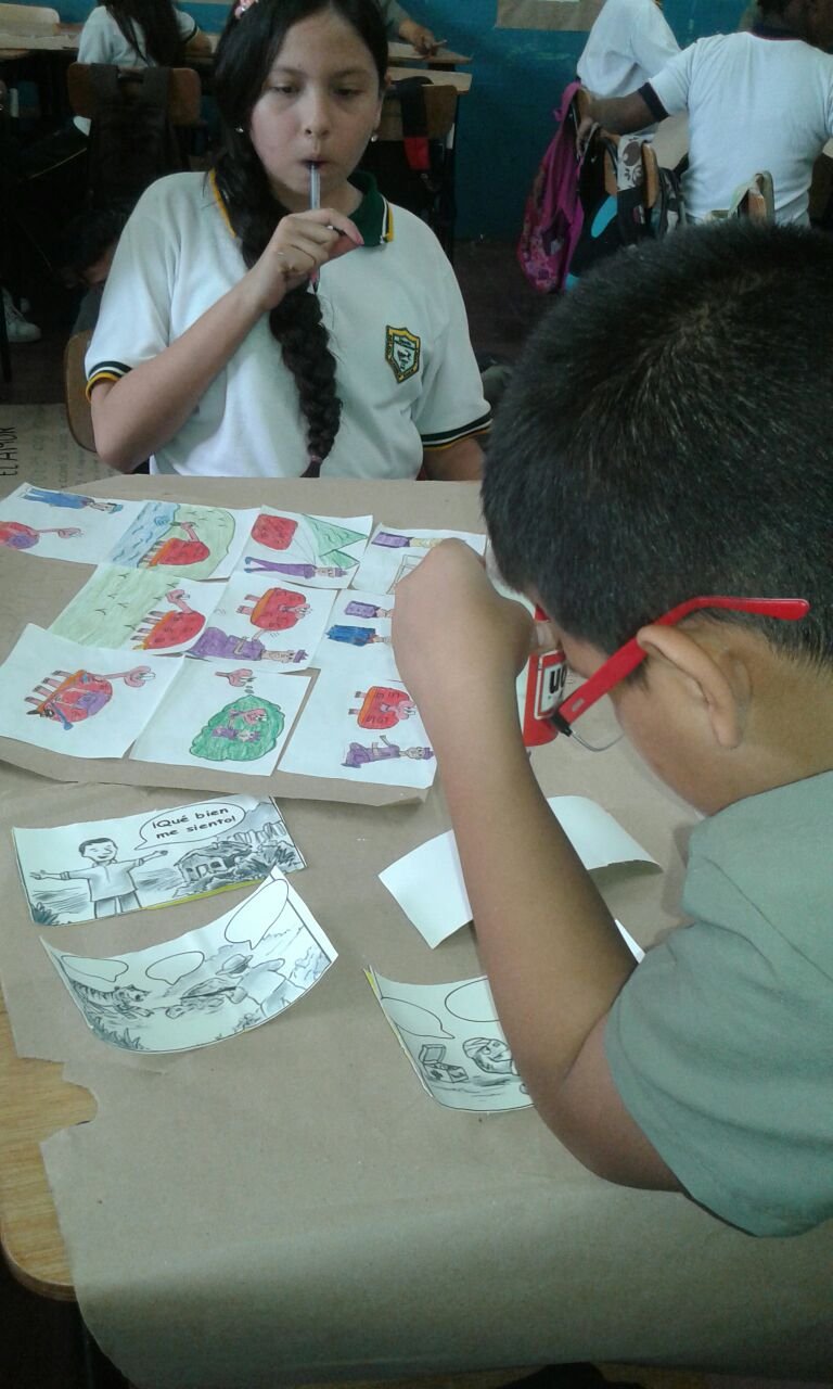 Estudiantes de grado 5 realizan carteles construidos colaborativamente sobre diferentes tipos de escritos.