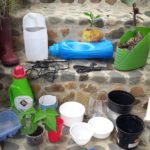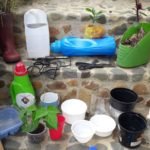 Recipientes plásticos, Tarros o materas medianas, Tijeras, Pala, Puntillas, Palo de escoba, cegueta o serrucho, Tierra, Abono orgánico compost, Materas, recicladas o jardineras, con profundidad de 13 a 15 cm y de largo más de 40 o igual a 40 centímetros - Tierra, cascarilla de arroz, humus, o compost (abono organico)