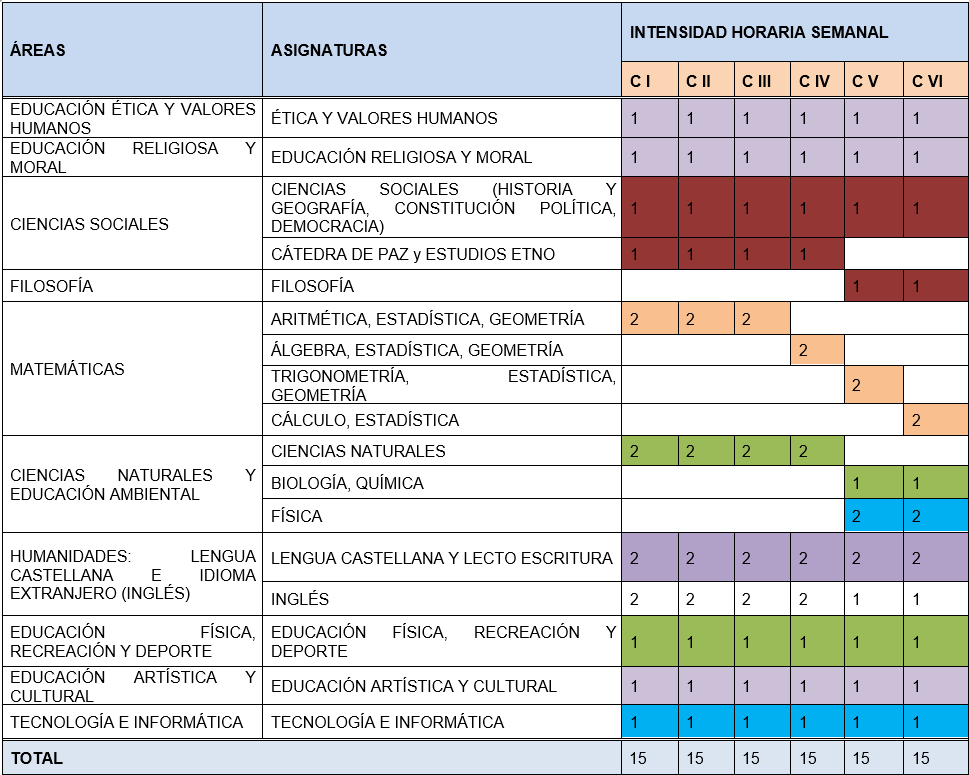 b. Intensidad Horaria Básica, Media y Técnica