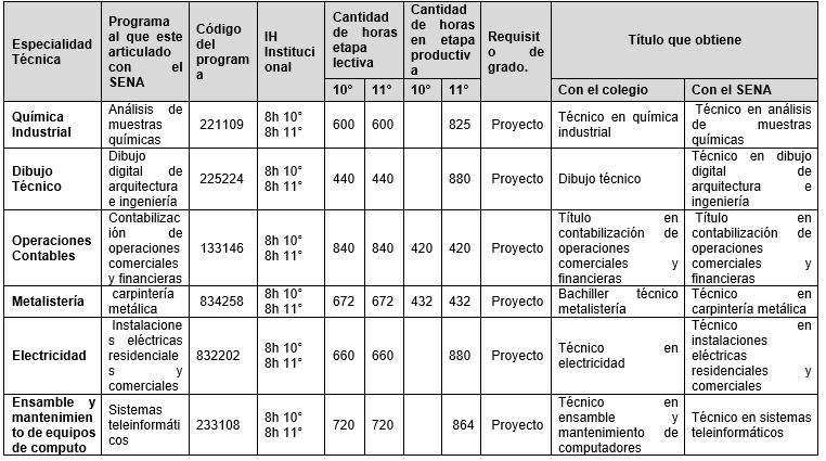 Artículo 35: Caracterización de las especialidades técnicas que ofrece la Institución