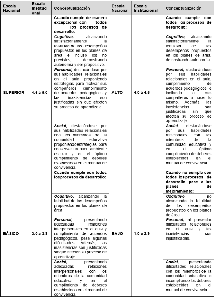 Artículo 11: Los desempeños personales, sociales y cognitivos se evidenciarán de la siguiente manera