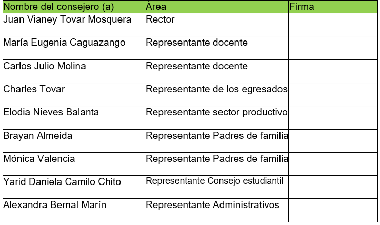 En virtud de lo anterior, el Consejo Directivo de la Institución Etnoducativa Monseñor Ramón Arcila,