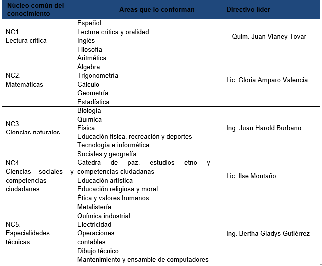 Artículo 14. La institución define los núcleos comunes del conocimiento de la siguiente manera